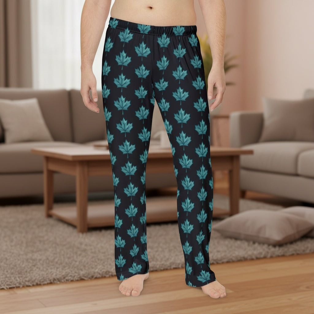 Men's Pajama Pants — Teal Maple Leaf Allover Print Loungewear