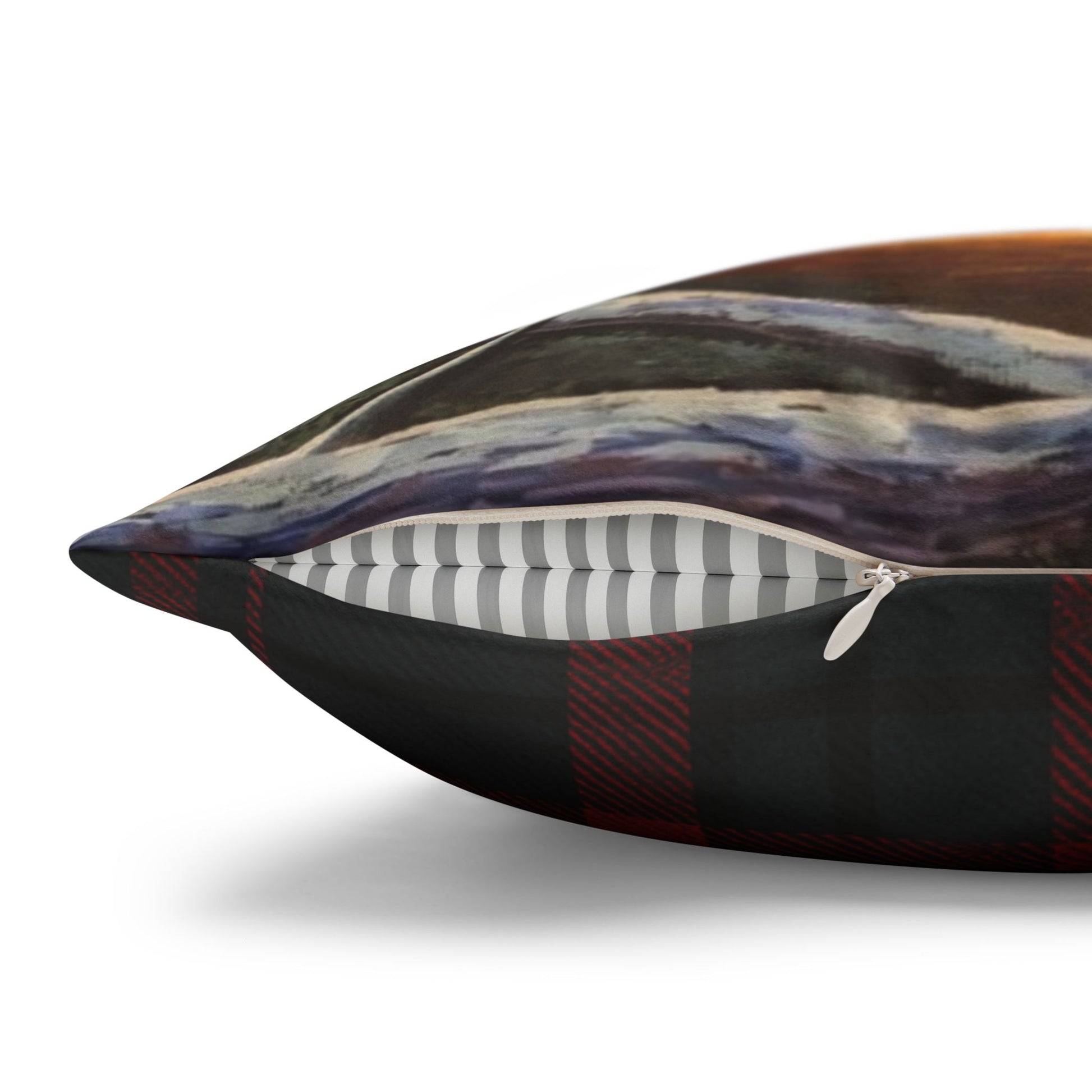 A plush faux-suede pillowcase that brings a hand-painted mountain dusk scene into your living space. The double-sided print bathes a soft, velvety surface in warm oranges, deep blues, and forest greens, creating a cozy, cabin-by-the-lake mood. The concealed beige zipper keeps the look seamless while allowing easy removal. Use a slightly oversized insert (about 2" larger) for a full, cushiony silhouette. The cover is animal-friendly and durable—made from polyester microfiber that feels like suede but is built for everyday comfort and long-lasting color.