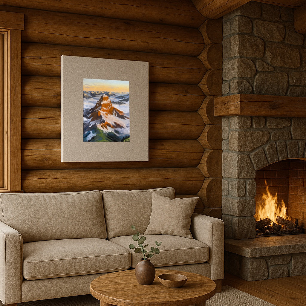 “Sunset Peak” captures the awe-inspiring glow of twilight as it kisses the summit of a snow-draped mountain. Painted with vivid, high-contrast tones of warm oranges and deep blues, this 12” x 16” acrylic painting evokes the magic of spring light meeting alpine silence. Whether it reminds you of the Rockies or a dreamlike summit at golden hour, this piece brings emotional depth and natural majesty into your space.